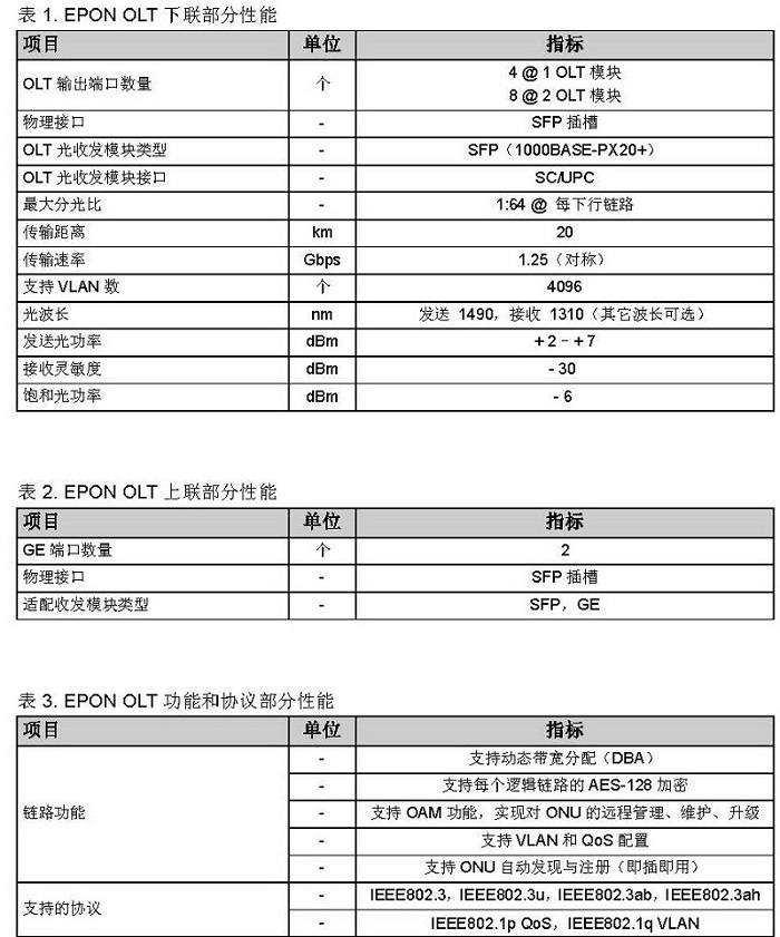 EPON OLT 部分特性